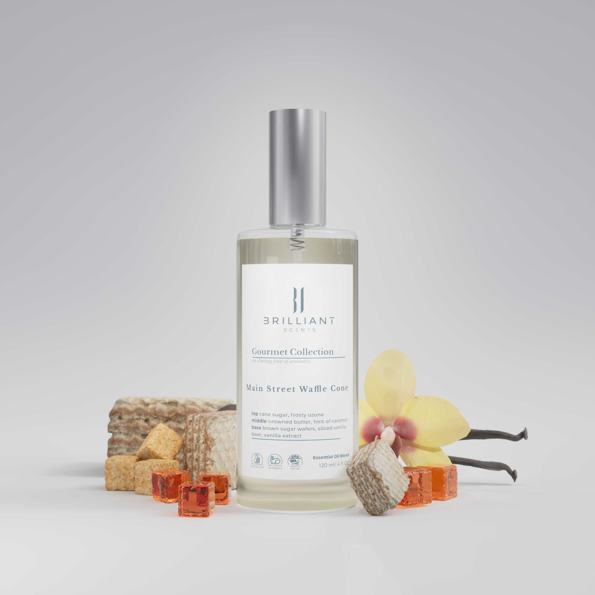 This scent is pure joy—a nostalgic stroll down a charming boulevard, where the sweet scent of fresh waffle cones fills the air. Main Street Waffle Cone wraps your space in warm vanilla, gooey caramel, and golden brown sugar, with a kiss of frosty ozone that adds magic to every breath. It’s the essence of indulgence, childhood wonder, and carefree afternoons all in one unforgettable fragrance.